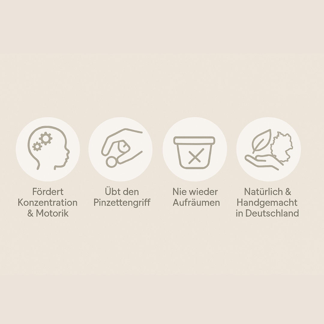 Das Spiel regt die Phantasie an, fördert die Kreativität und Geschicklichkeit. Die Entwicklung der Feinmototrik, des haptischen Empfindens und der visuellen Wahrnehmung wird so spielerisch von Babys, Kleinkindern und Heranwachsenden gefördert. Insbesondere der sogenannte Pinzettengriff wird dadurch geübt.