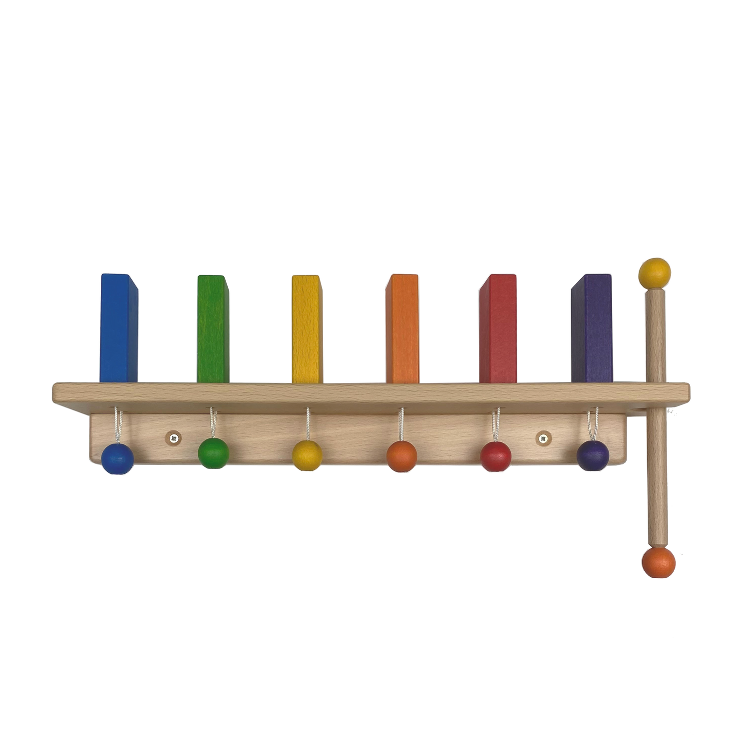 Ein großer Vorteil der Wandholzspielzeuge: Sie sind praktisch, kein Aufräumen ist nötig, sie hängen fest an der Wand und sind jederzeit einsatzbereit.